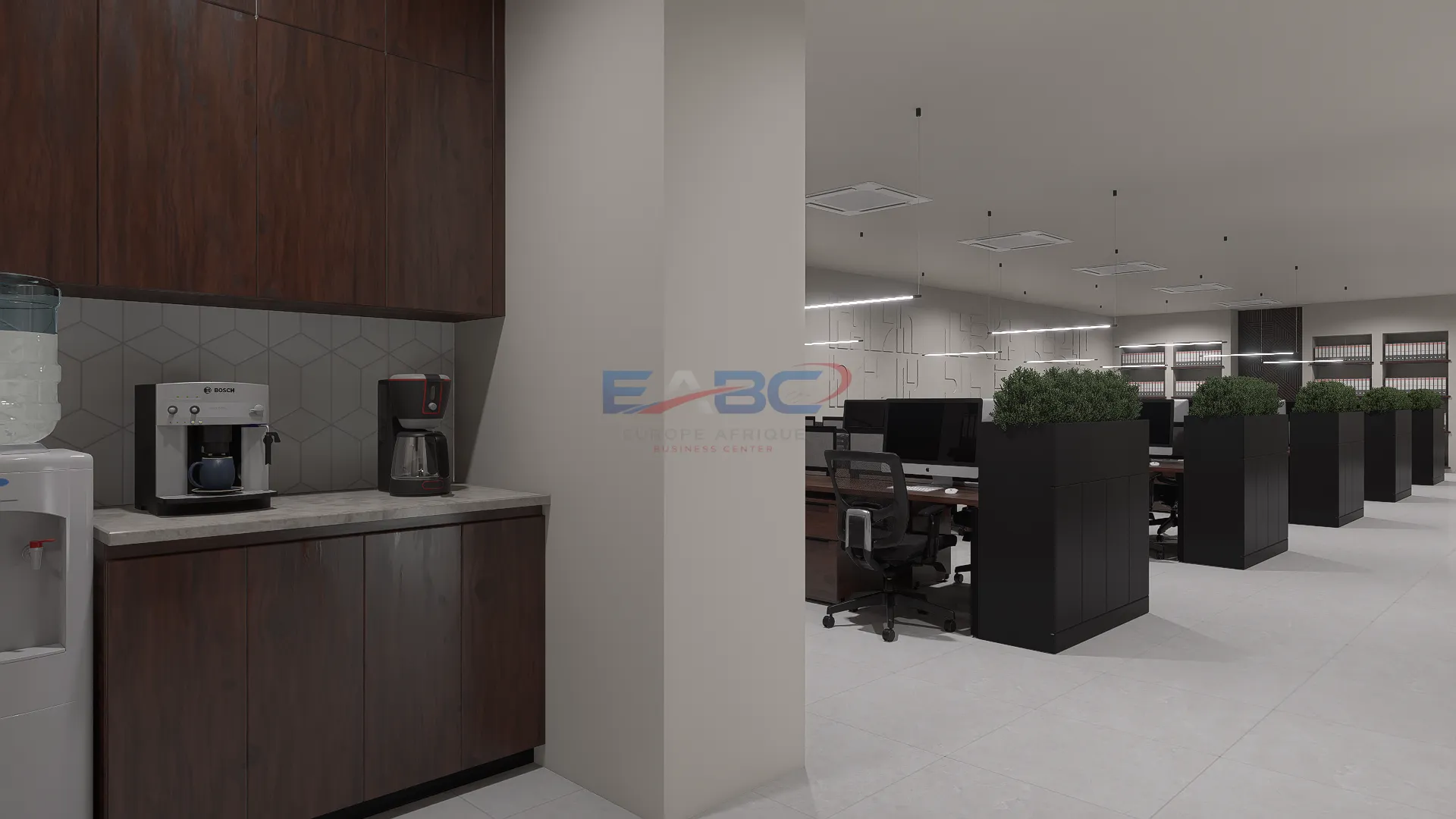 Installé au 2ᵉ étage, cet espace propose différents environnements de travail, incluant des bureaux privés et des espaces de coworking, permettant de s’adapter à différents modes de travail : collaboration, concentration ou réunions d’équipe.